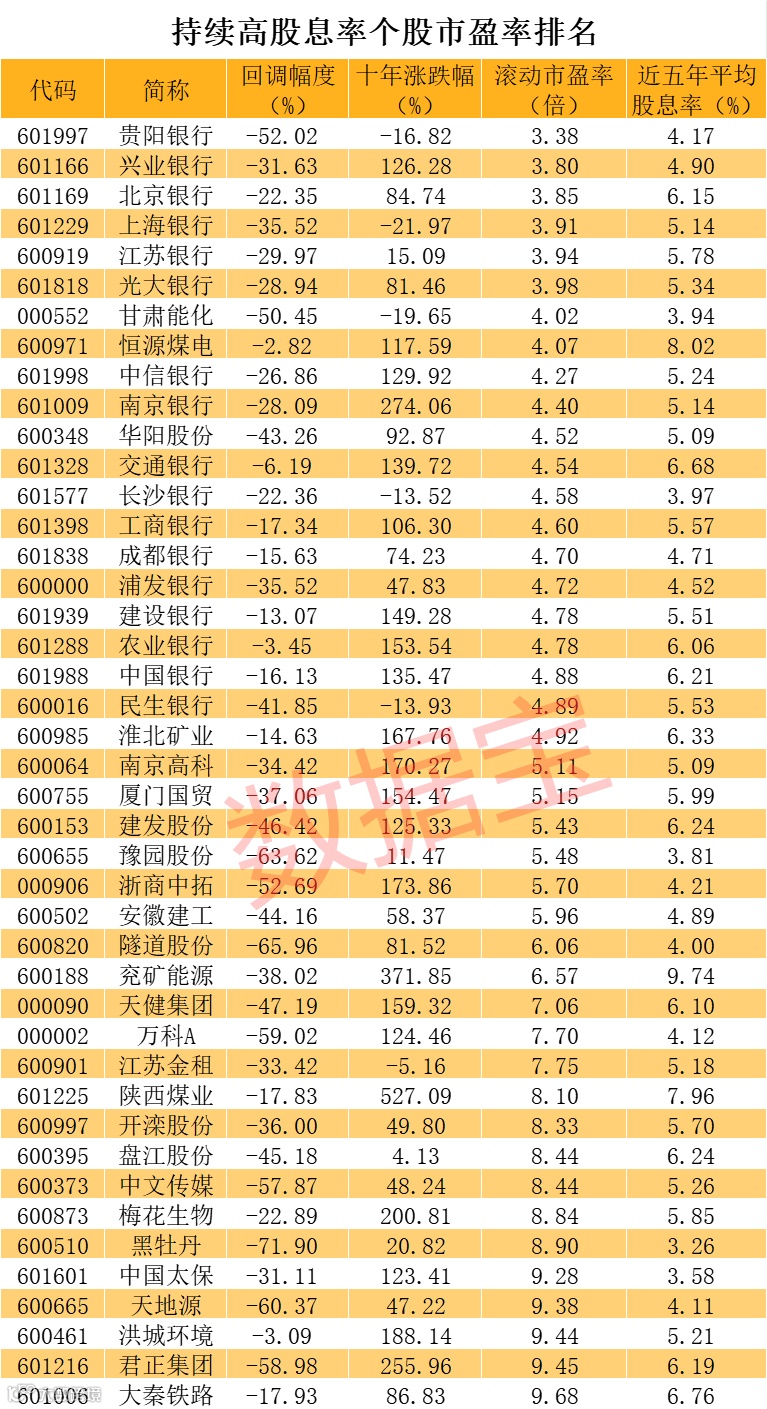 相比较而言,高股息率个股的表现要远胜于大盘指数。数据显示,上述98只个股近十年涨幅平均值高达128%,远远超过各大指数同期涨幅。其中有54只个股涨幅翻倍,占个股数量比过半。具体而言,陕西煤业、伟星股份十年涨幅均超5倍,中信特钢、深高速、龙佰集团等个股均涨超4倍。