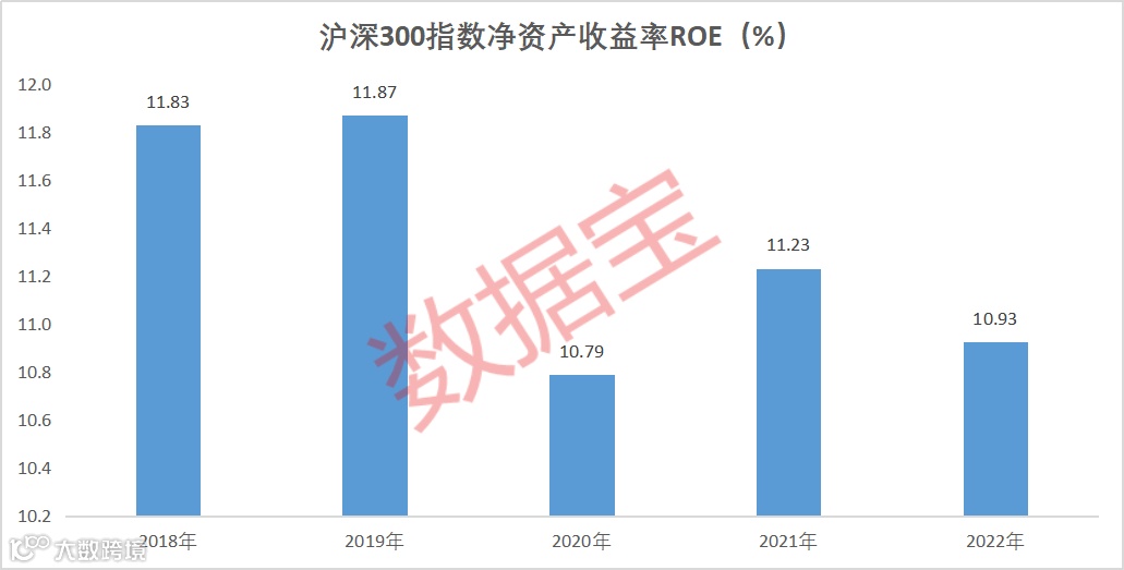 首先,盈利能力保持稳定。以沪深300指数为例,其成份股2022年的加权净资产收益率(ROE)接近11%,与过去两年基本持平,较2019年低1个百分点左右,即相关成份股的盈利能力并未发生大幅下降。
