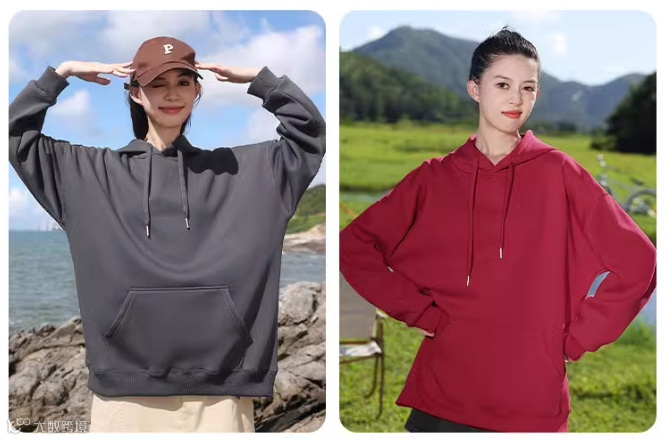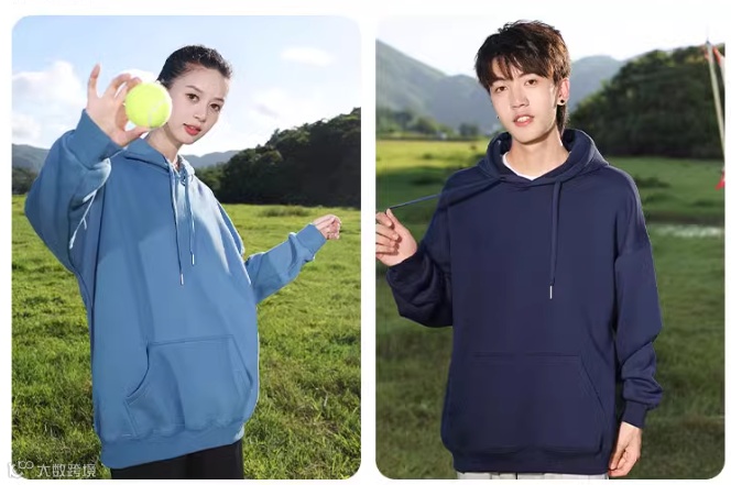 连帽卫衣:带有街头潮范,能够突显造型的层次感,是秋季卫衣定制中的热门款式。