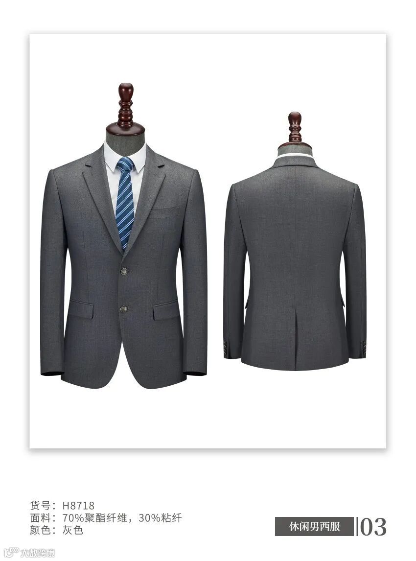 灰色:灰色西装是近年来非常流行的颜色。它既有黑色的庄重感,又比黑色更加柔和。灰色西装适合多种场合,如商务活动、休闲聚会等。不同深浅的灰色能展现出不同的气质,如浅灰色显得年轻时尚,深灰色则更加成熟稳重。