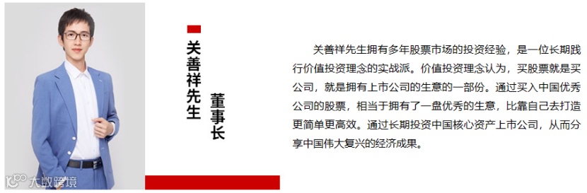 那么,关善祥究竟是何许人也?综合公开资料来看,他出生于1985年,且有三个小孩,长期吃素,对空气质量要求很高。他在雪球的ID为“u兄万亿孤独之路”,雪球上的粉丝接近10万。他信仰价值投资,号称“中国巴菲特”,经历了从30万本金到上亿的十年百倍收益。而他的目标是自己实现500亿的投资目标,家族基金通过后代实现万亿的投资目标。目标是投资做到120岁。
