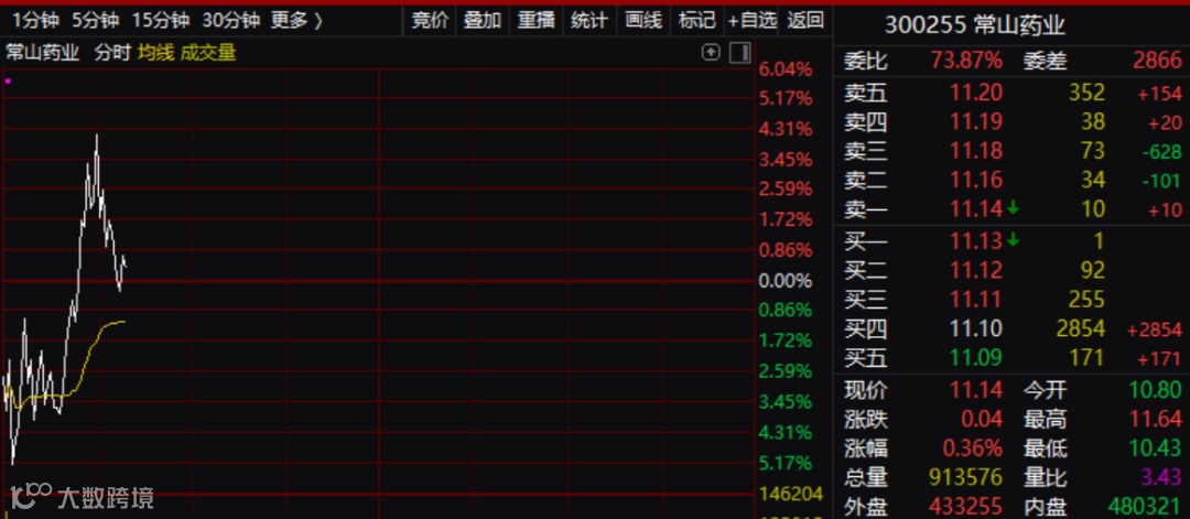 今天早盘,近期最火的减肥药亦被吓一跳,常山药业一度大跌超5%,但很快就被多头拉起。