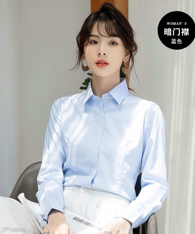 1、把衣服穿上,看不到扣子的就是暗门襟,暗门襟在门襟处多缝制一层盖住纽扣,常见于极其正式场合的礼服类衬衣。