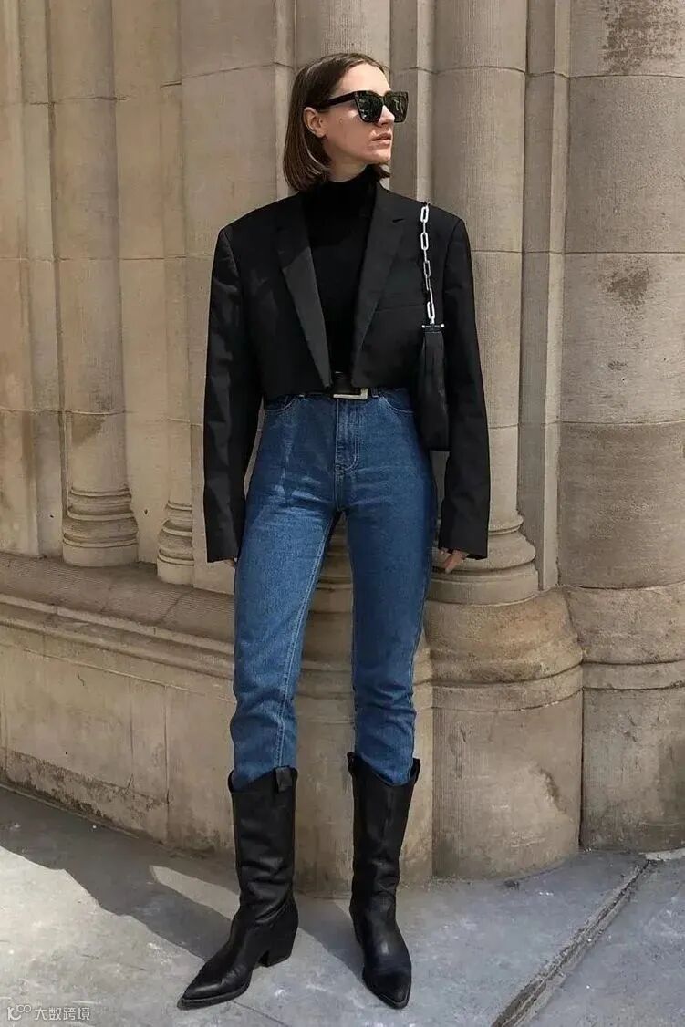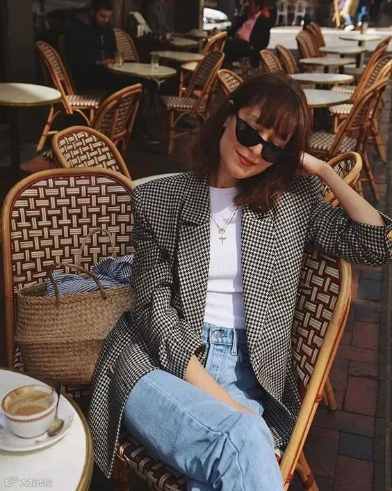 与牛仔裤的搭配,是最经典时髦的穿法。气质又随性,巴黎女人都爱这么穿。