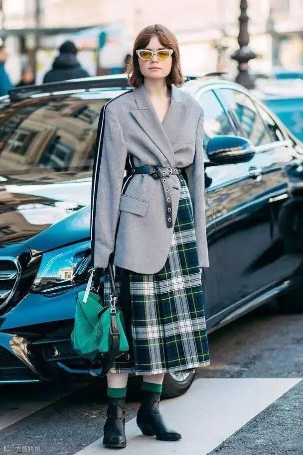 与格纹裙的搭配,更是让你的穿搭复古到底,满满都是英伦风的感觉。