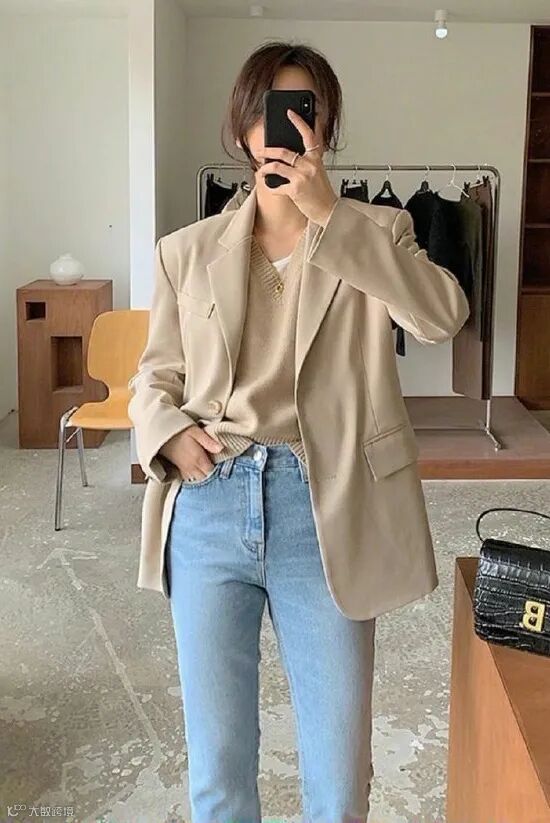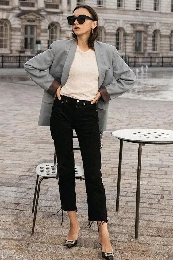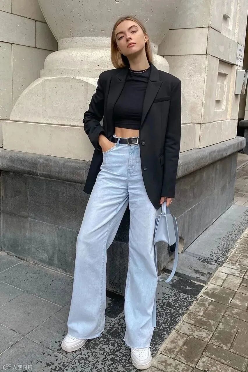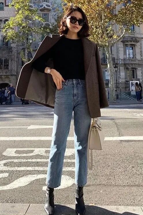 想要让腿看起来又细又长,那么就选择搭配西装+小黑裤吧,在视觉上特别显瘦!