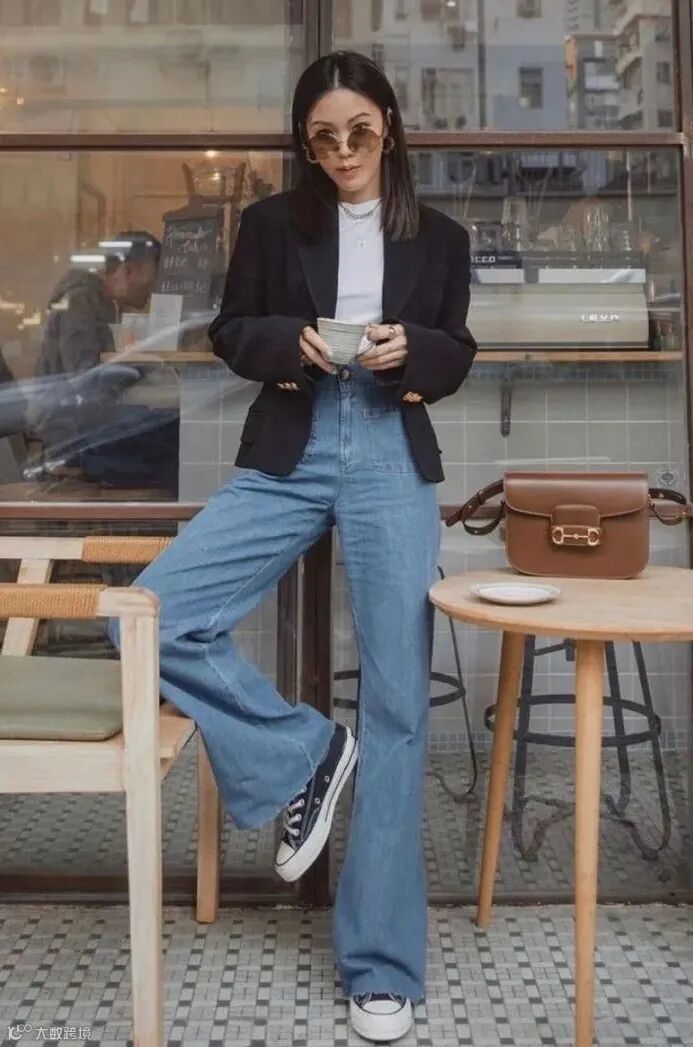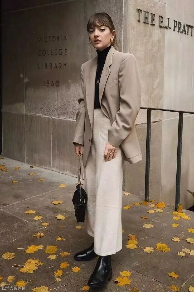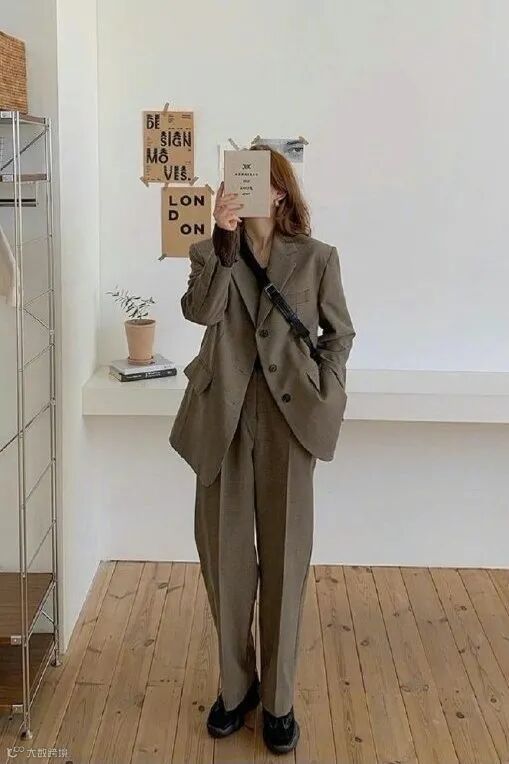 西装+阔腿裤,真的是能够让你穿得舒服又时髦。