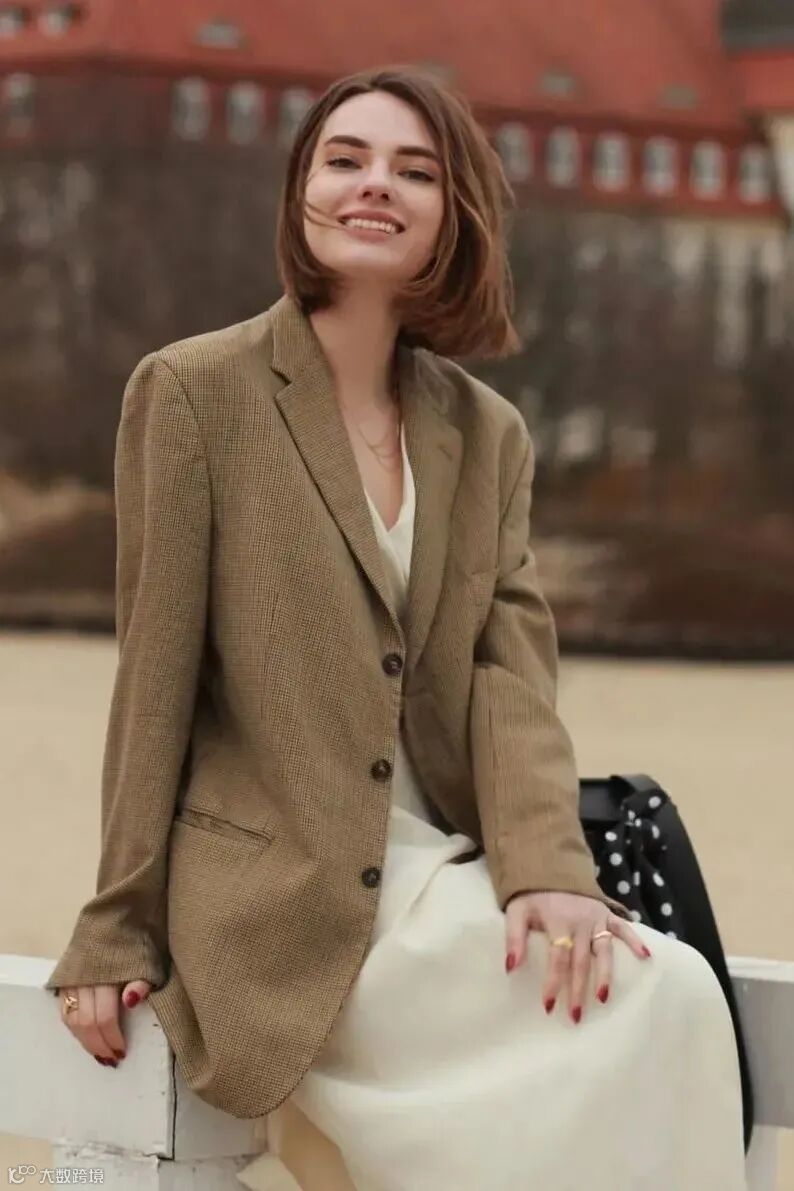 西装+针织裙的搭配,是今年秋冬最火的穿法,凸显气质优雅。