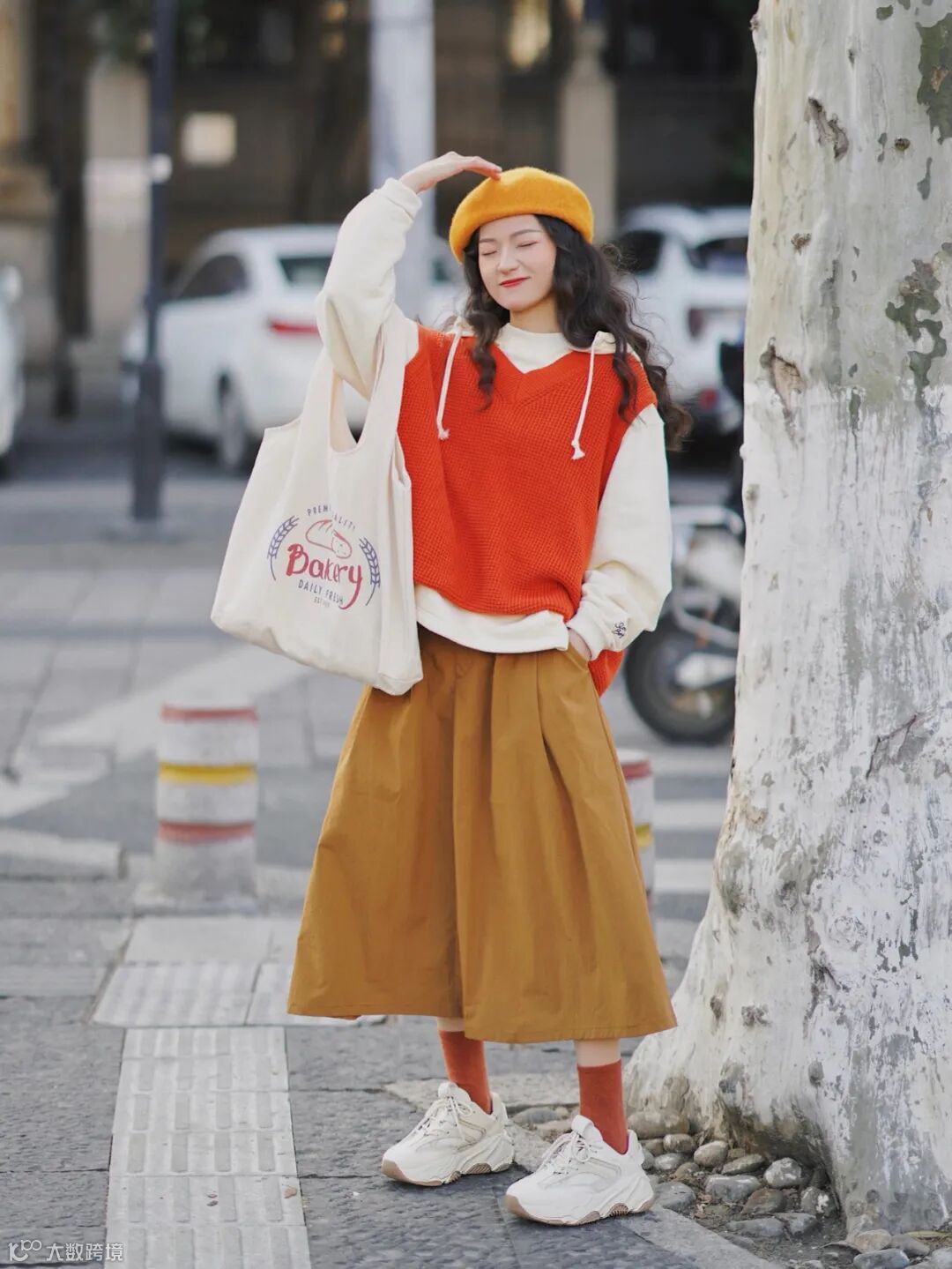 这件颜色就很秋天了,宽大的版型与裙装搭配最能打造man的时髦感觉,矮个子记得利用前面说的“短上衣打造法”,还能在无形之中二次拉长腿,