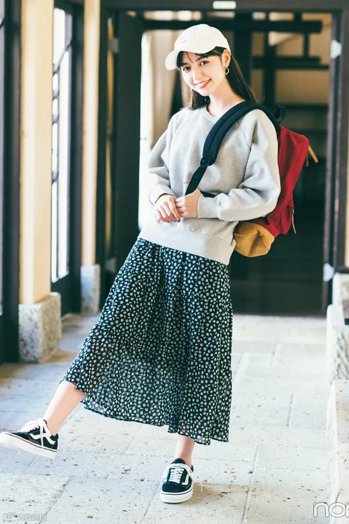 小碎花裙绝对是混搭卫衣的最佳拍档,不仅实穿度更胜一筹,搭配起来也最是清新活力,少女感十足。