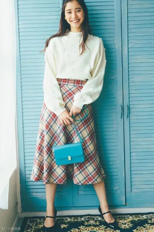除了花朵图案以外,大家也可以选择这种波点or格纹印花图案的裙子来与卫衣玩混搭,率性之中又透着几分复古感,