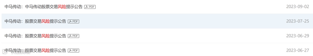 实际上,风险提示也是中马传动过去3个月公告的关键词。