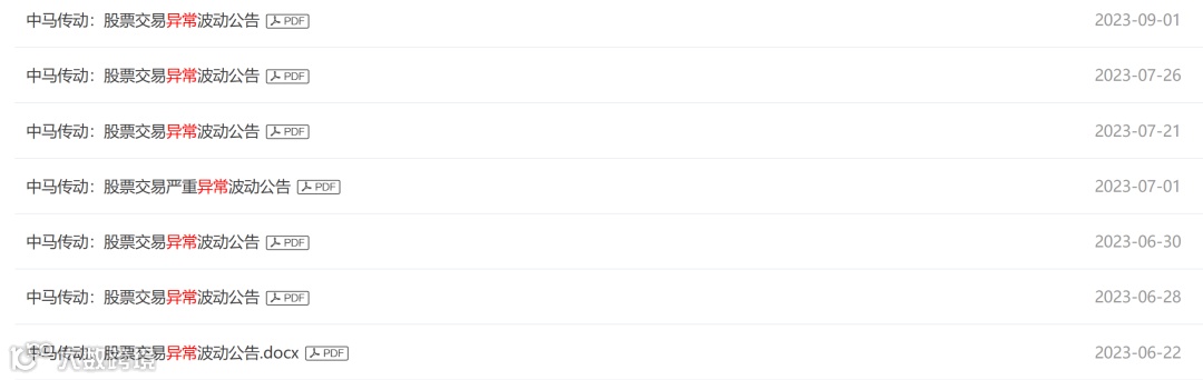 上周末(9月2日),中马传动收盘后发布风险提示公告。而前一交易日(9月1日),公司还发布了一份异动公告的内容。