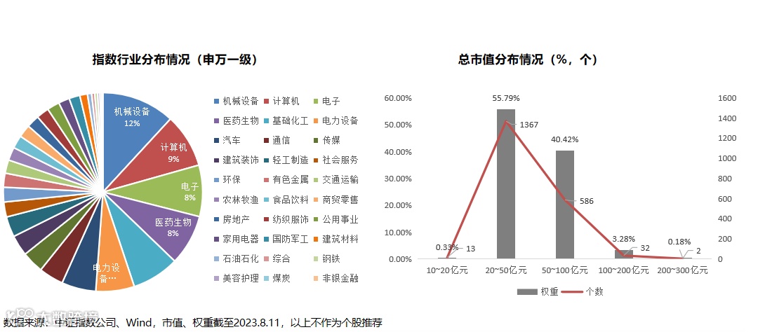 相较于其他主要宽基指数,中证2000指数不仅超小盘风格纯正,而且成分股多聚焦于新兴行业,科技含量高、盈利弹性大,高成长性属性突出。数据显示,中证2000指数覆盖了除银行板块外的30个申万一级行业,指数权重行业包括机械设备、计算机、电子、医药生物、基础化工、电力设备、汽车、通信、传媒等受益于经济转型与产业结构调整的行业方向。