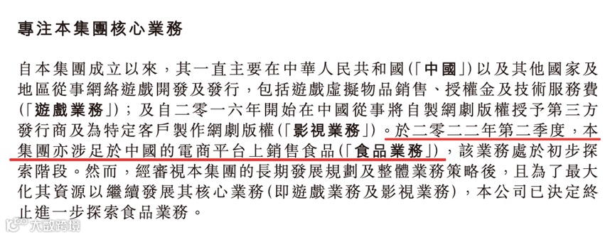 蓝港互动公布的理由是,食品电商业务处于初步探索阶段,经审视集团的长期发展规划及整体业务策略,为了最大化公司资源,以继续发展游戏和影视核心业务,遂停止探索食品业务。