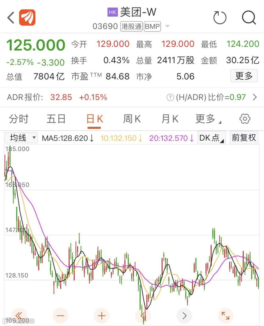 股价方面,截至9月7日收盘,美团报收125港元/股,总市值为7804亿港元。今年以来,美团股价回调接近30%,而较2021年2月高点回调接近70%。