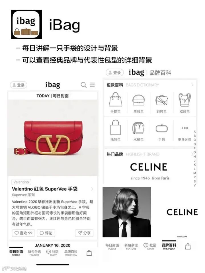 【全方面讲解手袋的设计和历史】每日一包,详细讲解设计理念、细节、时代背景和品牌底蕴等等。它绝不是一个手袋种草app,而是将手袋真正视作一种艺术和文化的图鉴!选品很棒,既有当季新款,也有经典款和冷门佳作。