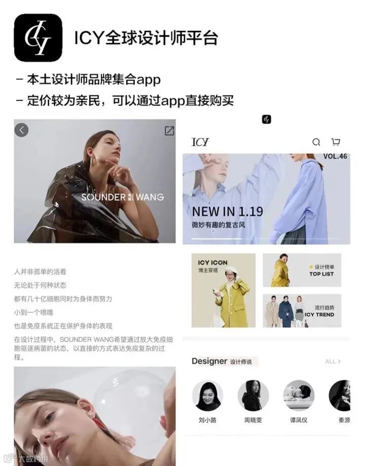 【本土设计师+优质自媒体】集合了许多本土设计师品牌,可以看到设计师们的专访和lookbook。他们的自媒体内容涵盖了时尚和lifestyle,质量很高。