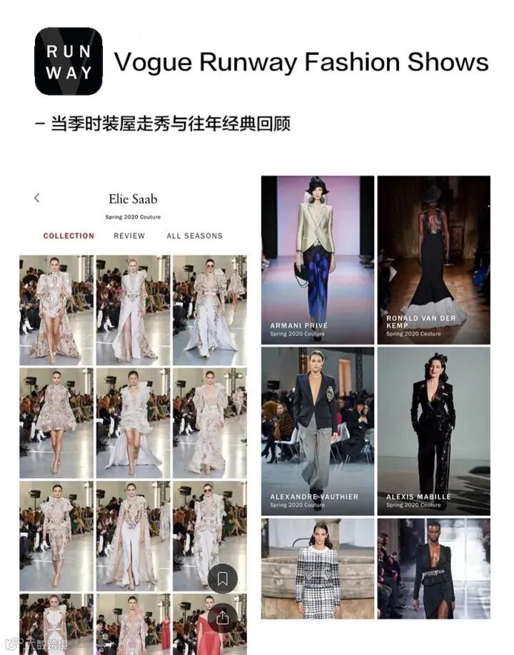 【当季与经典的秀场高清原图】这款app我以前也有推荐过,老粉们还有印象吗~从当季直击到经典回顾,成衣、婚纱系列、高定……时装屋的各大秀台都在这儿啦!