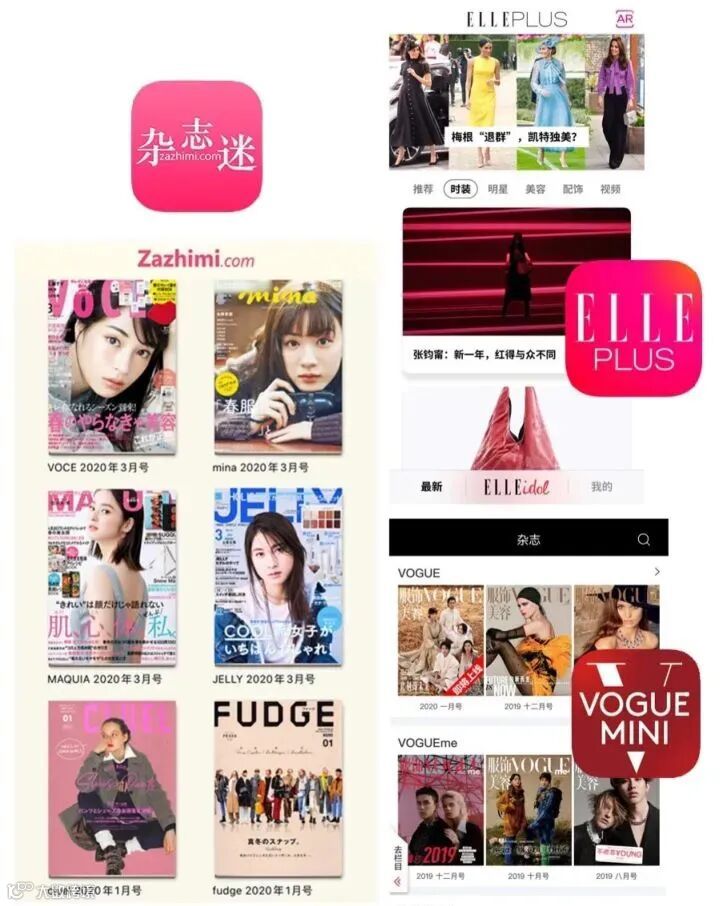 【时尚趋势+令人怀念的精美纸媒排版】首推ELLE Plus和Vouge Mini,它们的界面都针对手机端做过优化,阅读体验不错。喜欢日系的同学们也可以看一看第三方日系杂志集合的app:杂志迷。杂志种类很齐全,风格和适应的人群非常多样。