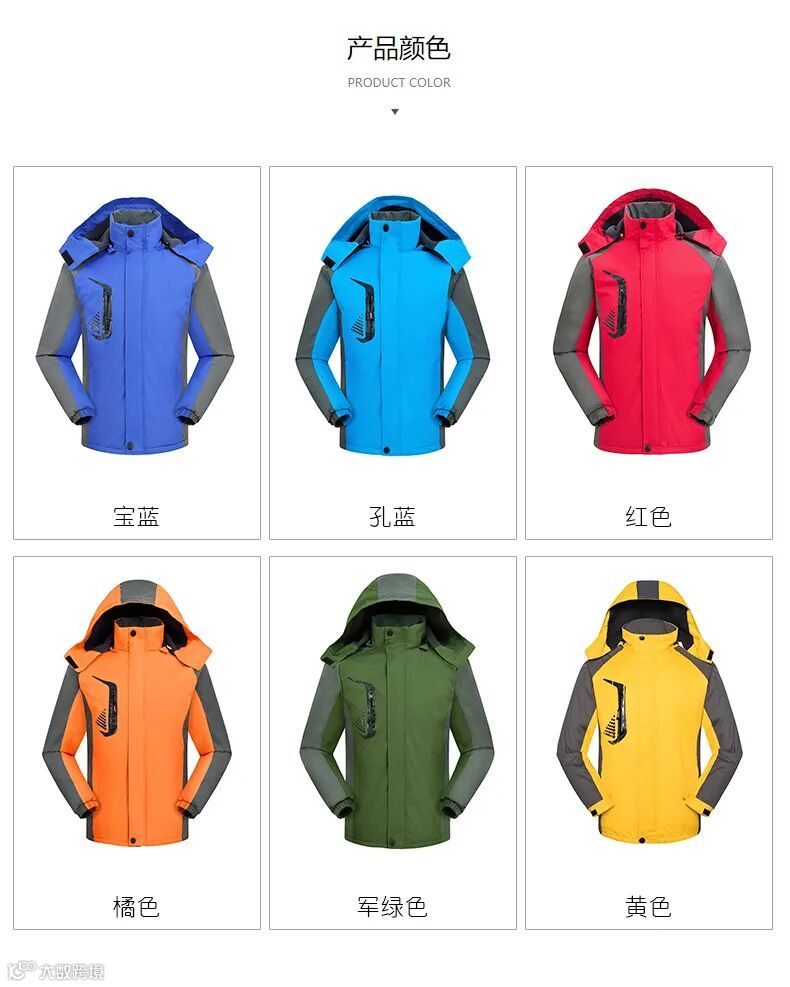 冲锋衣在面料上具有高耐磨性与抗勾丝性,面料手感滑爽且具有骨感,高密度的织造工艺让布面平整且具有珠光感,加入防水透湿图层整理,防水透湿3k-5k,持久防泼水保证中雨以下情况,布面不会被浸湿。