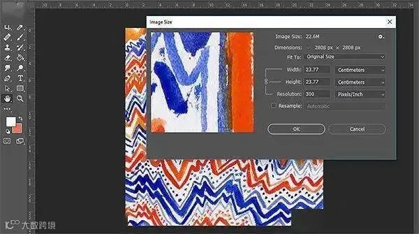 通过从屏幕左上方的菜单栏中选择“图像”>“图像大小”,检查图像的大小。如果图像的dpi大于300,请将其降低到300dpi。如果图像的dpi小于300,则可以保持此尺寸。请注意,在织物上打印时,我们建议用于数字打印的图稿的dpi至少应为150,以获得最佳效果。