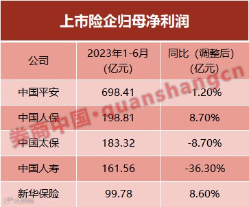 中国人保作为财险公司影响最小,上半年实现净利润198.81亿元,同比增长8.7%。
