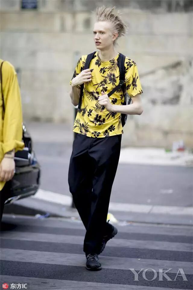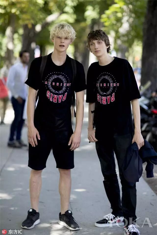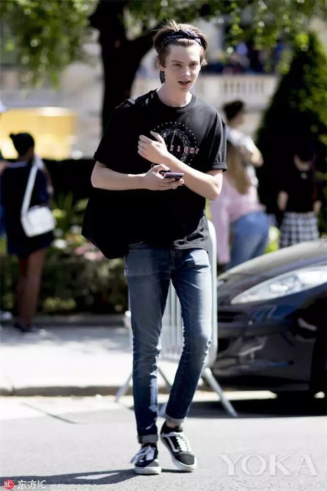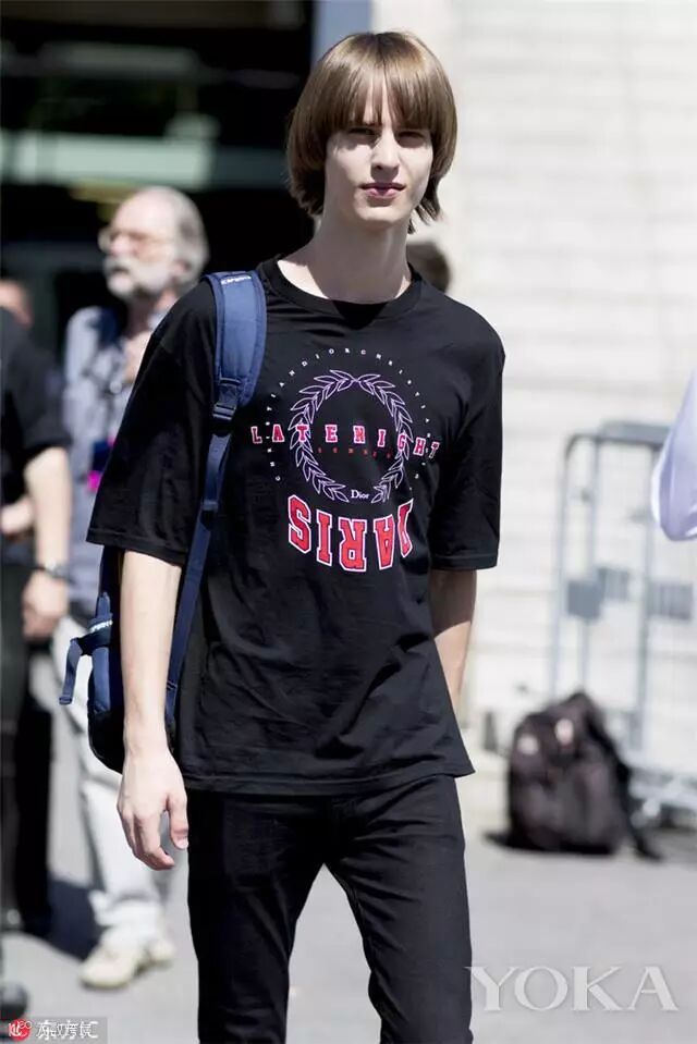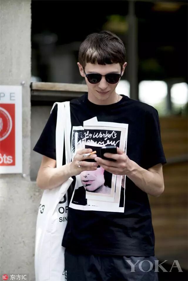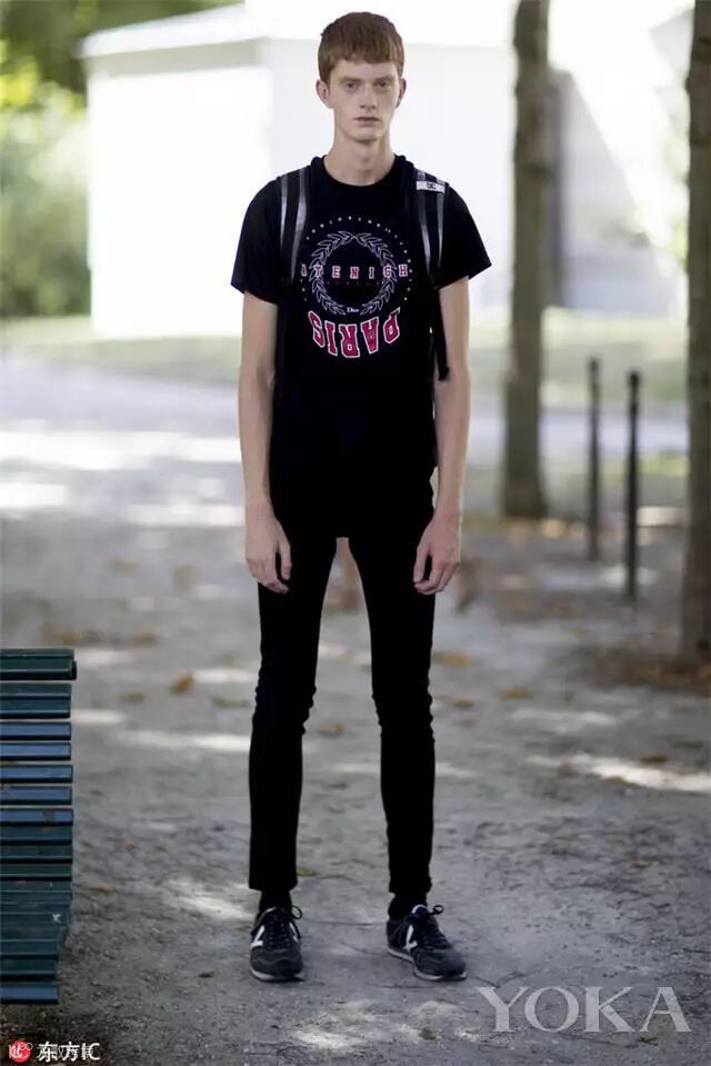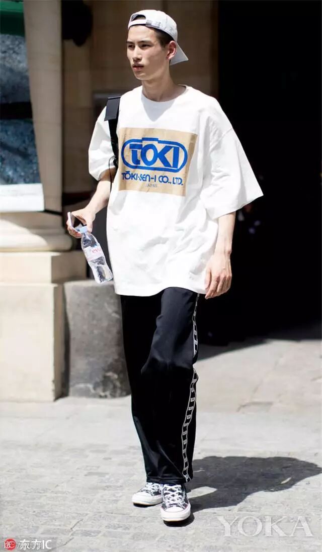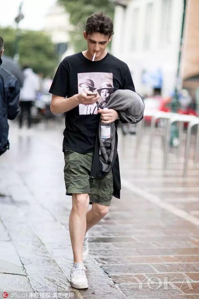 这种“点到为止”“恰到好处”的图案印花,很好地满足了男生扮潮的心愿,也让造型更丰富了。怪不得今年国外街拍很多男生穿图案印花T恤,要比穿素T恤的多得多!