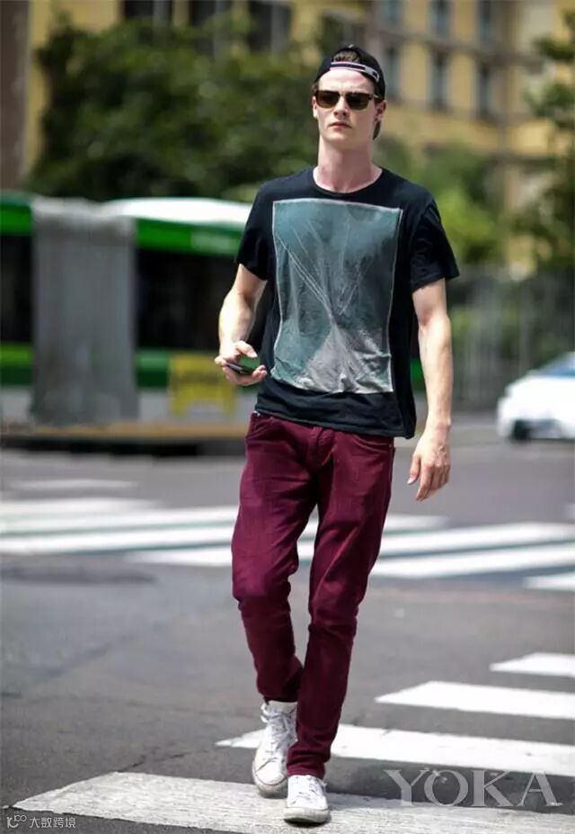 印花T恤和牛仔裤、卡其裤、西裤、运动裤等,都能组成很好的CP,主要还是在配饰方面下点功夫。