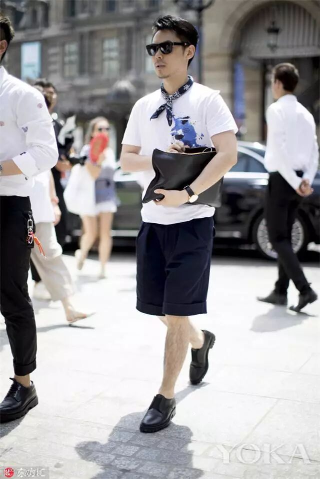 2.也可以搭配丝巾、手拿包,不过一般我天朝的男生不太敢这么搭配,除了个别走在潮流前线的先锋。