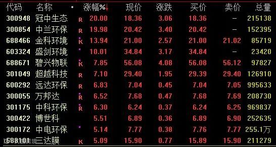 环保板块今日走势活跃,截至收盘,冠中生态、中兰环保“20cm”涨停,金科环境涨约14%,盛剑环境亦涨停,碧兴物联、超越科技涨超7%。