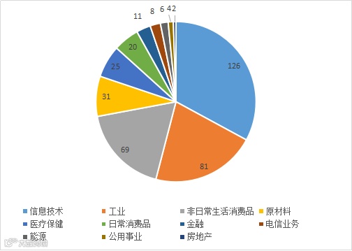 从涉及重组的新三板企业所属的投资型行业看,去年至今信息技术类企业重组次数最多,为126次,其次是工业类企业81次,非日常生活消费品类企业69次(见下图)。