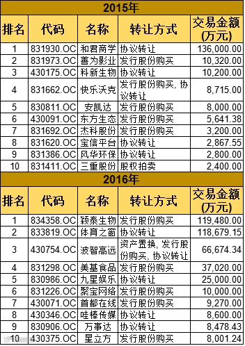 去年所有涉及重组交易总金额为261.67亿元,已完成的总金额为18.55亿元,已完成中最高的是和君商学受让汇冠股份支付的13.6亿元;今年至今所有重组交易总金额为165.23亿元,已完成的总金额为46.1亿元,已完成中最高的是颖泰生物11.95亿元收购山东福尔(体育之窗是13.8亿港币折算成11.87亿人民币)。