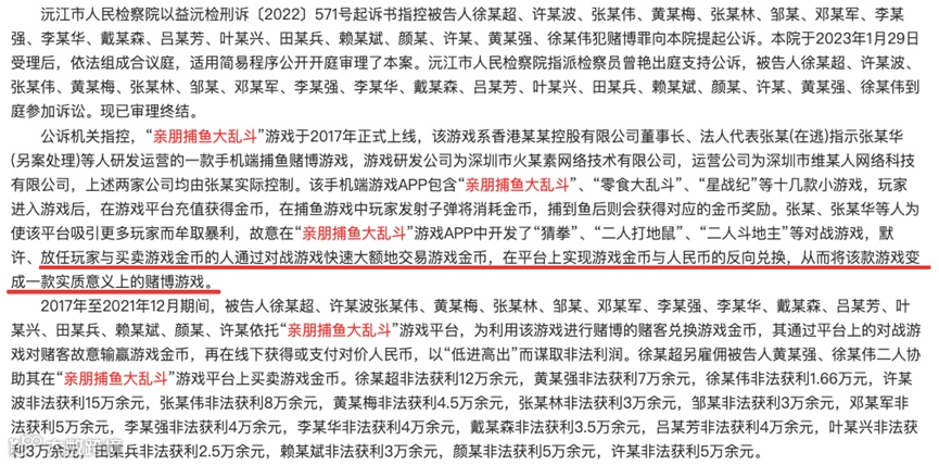 今年6月,火岩控股进一步公布了涉案细节。涉案游戏为一款名为《亲朋捕鱼大乱斗》的捕鱼游戏,其运营单位为深圳维京人。