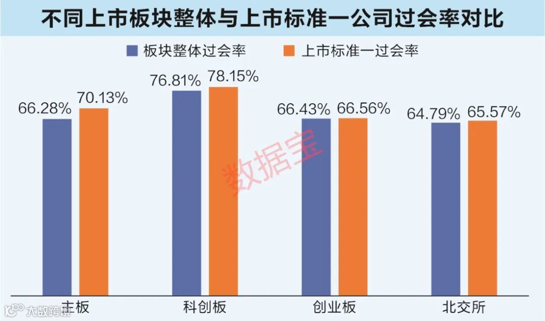 综上所述,创业板、科创板之所以选择上市标准一,一方面在于这些公司在规模、研发或近一年财务指标不能完全满足其它标准的要求,对比之下,标准一的限定条件相对简单,科创板的科技属性显著超越其它板块,此前欲上市科创板的先正达2020年~2022年累计研发强度4.26%,远低于科创板上市标准四公司的研发强度均值;主板注册制公司均为原核准制下平移的企业。另一方面,注册制下虽可以“宽进”,但严管之下100%的过会并非易事,上市标准一或成为“最优解”。