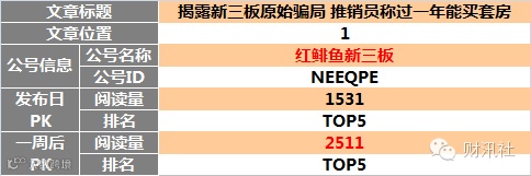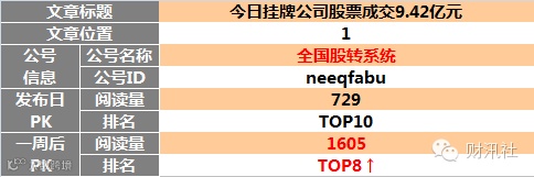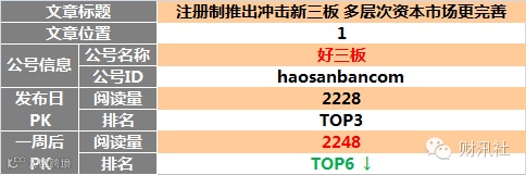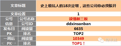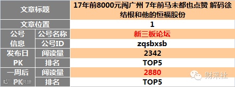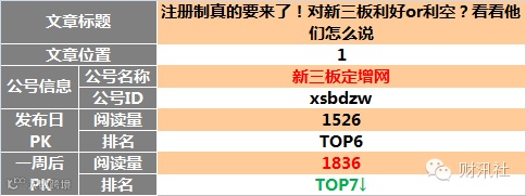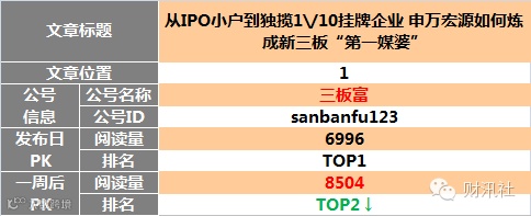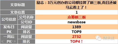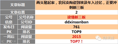 【原创榜】“三板富”榜首,“读懂新三板”两文上榜。一周后 “读懂新三板”头条文章升至榜首。