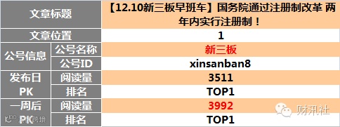 新三板自媒体同日发布图文阅读榜TOP10(12月18日)