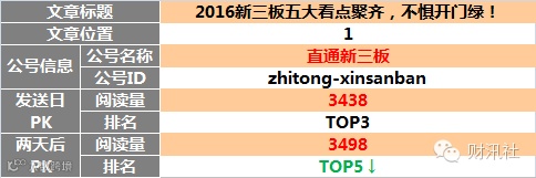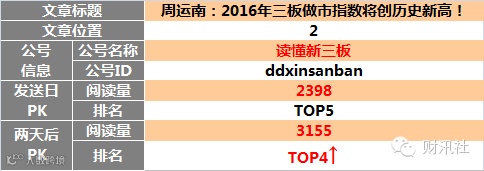 今天的《新三板微信阅读榜》上榜文章是上榜公众号于2016年1月4日发送的文章。