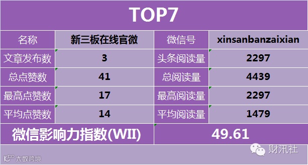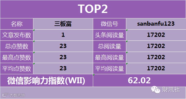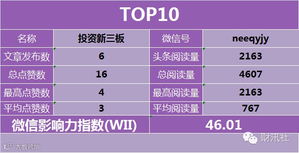 9、微信影响力指数(WII):根据公众号的头条阅读量、总阅读量、最高阅读量 、平均阅读量、总点赞数、最高点赞数、平均点赞数等多项公开数据,进 行指数加权运算得出,科学全面的反映公众号综合价值的一项指标。