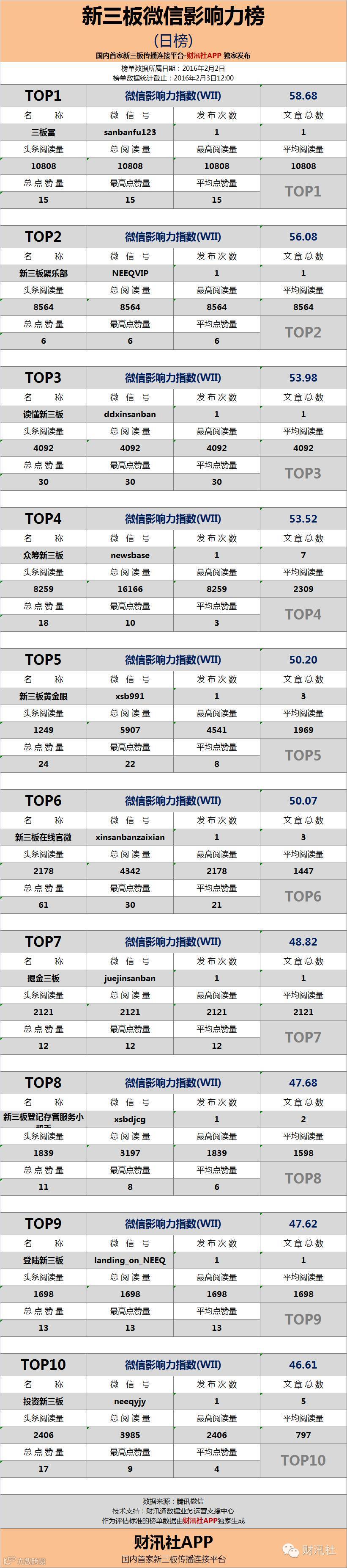 9、微信影响力指数(WII):根据公众号的头条阅读量、总阅读量、最高阅读量、平均阅读量、总点赞数、最高点赞数、平均点赞数等多项公开数据,进行指数加权运算得出,科学全面的反映公众号综合价值的一项指标。