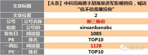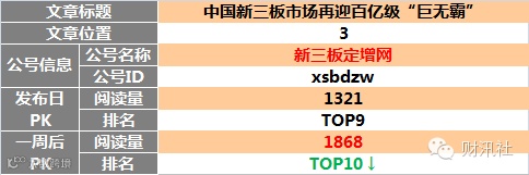 新三板自媒体同日发布图文阅读榜TOP10(12月26日)