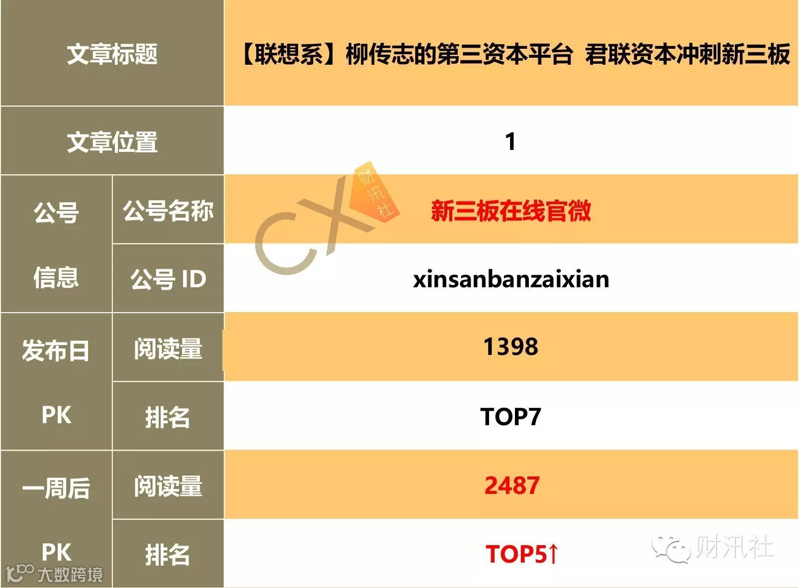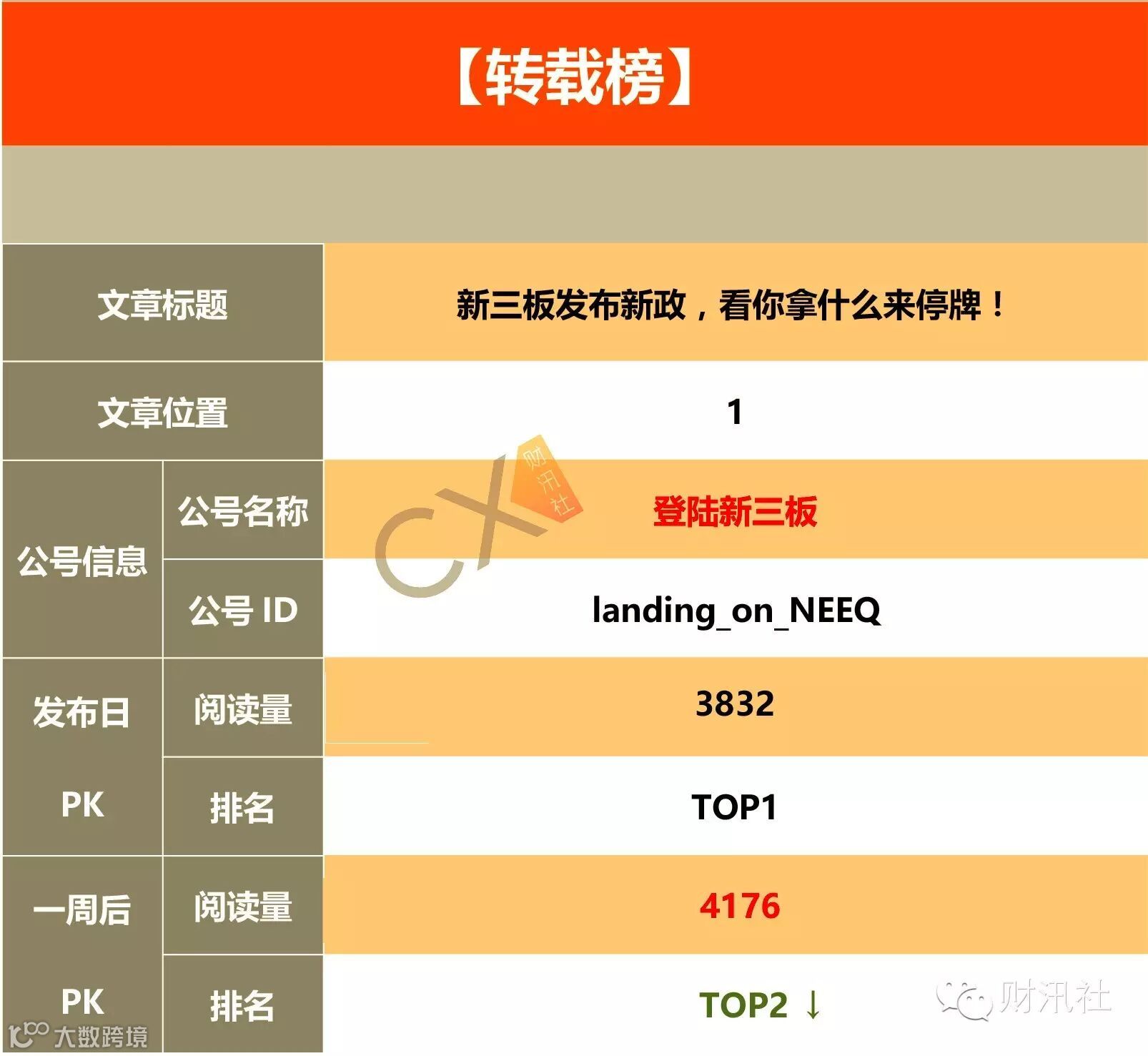 导读:本期榜单一周后排名:【原创榜】“读懂新三板”和“新三板在线官微”各有两文上榜【转载榜】“投资新三板”杀进前三,“登陆新三板”有两文上榜