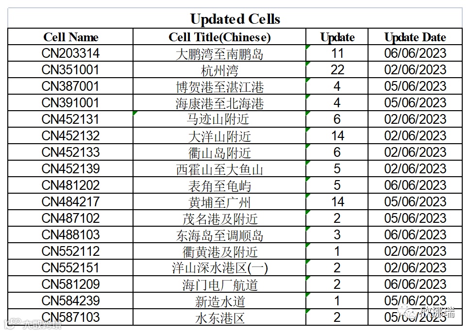 2023年6月14日星期三(2023第24期),海图数据变化如下: