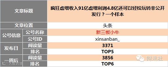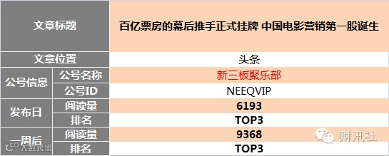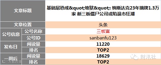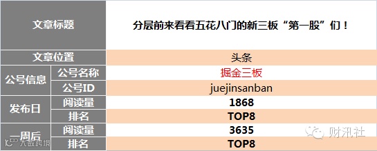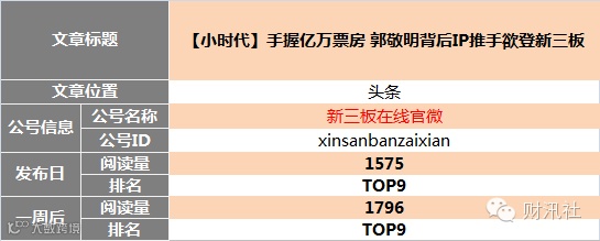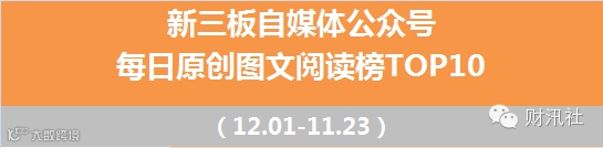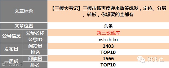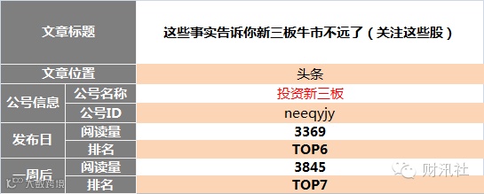 "新媒体指数"、"爱微帮"、"云堆新媒"等新媒体数字化管理平台数据得出。目前,本榜单仅对可获知的新三板自媒体公众号进行数据对比,如有更牛掰的公众号图文未列入榜单,请与财汛社运营团队(社掌)联系。