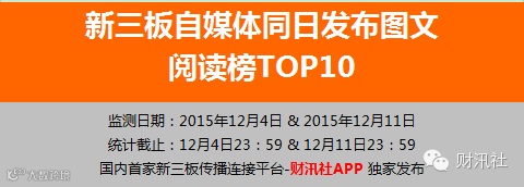 新三板自媒体同日发布图文 阅读榜TOP10【12.12】