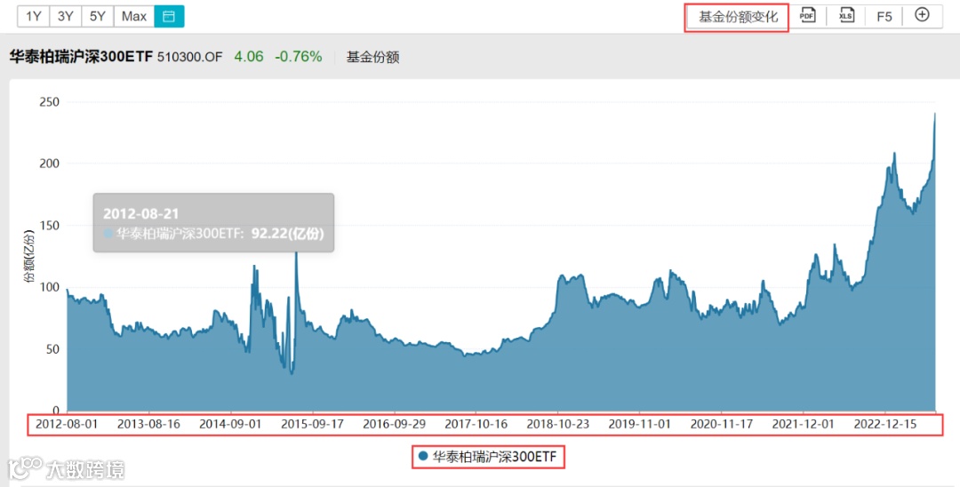 (华泰柏瑞沪深300ETF份额历年变化趋势图,来源:wind)