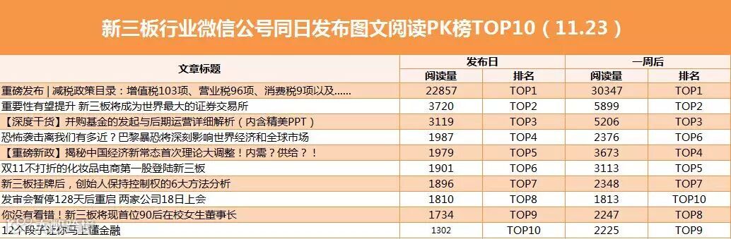 国内首家专业的新三板数字化投融传播平台——财汛社的运营团队(人称“社掌”),于2015年11月20日起推出独家特色产品——新三板行业微信公号同日发布图文阅读PK榜TOP10。