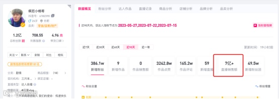 此前,“疯狂小杨哥”曾长期位居抖音带货榜前三名。灰豚数据显示,最近三个月,“疯狂小杨哥”直播带货销售额在7亿元以上,最近一个月的销售额在1亿元以上。