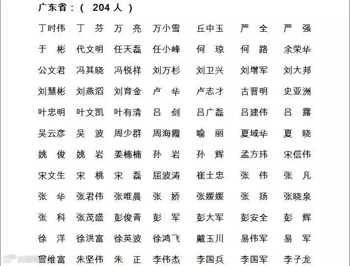 二广东省人员名单