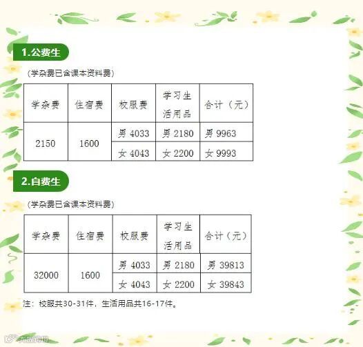 入学须知显示,男生校服费为4033元,女生校服费为4043元。此外,入学须知注明,校服共30-31件。
